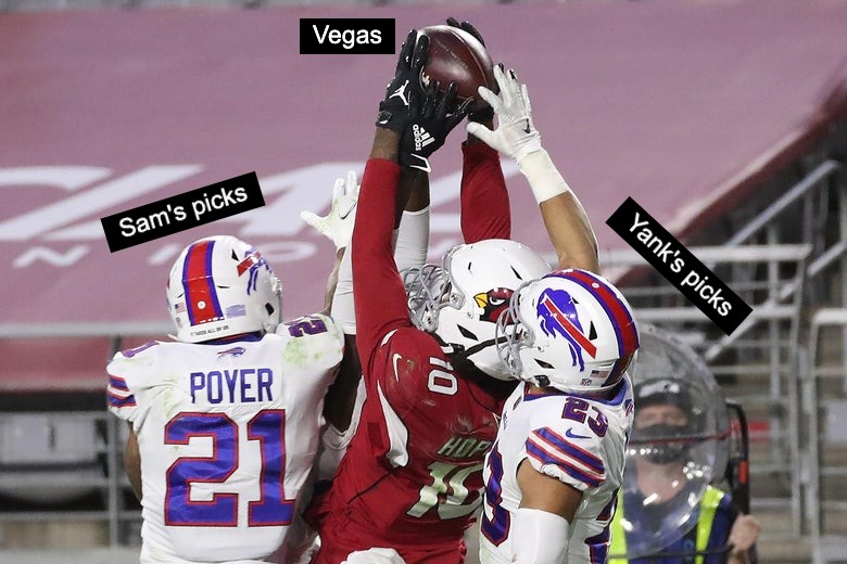 Sam: Why do I keep betting on the Bucs? Why am I almost $50 in the hole this season? Probably because I’m dumb and bad at gambling, but I will continue to like the Bucs and dislike the Rams this season until I run out of money. In some ways you could argue that this matchup is a team version of the Spiderman meme where the two Spidermans are pointing at each other. On the Rams’ side you have a dominant defense with a shaky QB under pressure and offensive minded head coach. They are capable of hanging 30 points on anybody or liable to score only 17. With the Bucs, you’ve got a similar script. A good defense that puts pressure on the QB, an old, immobile QB who doesn’t like to get hit, an offensive minded head coach, and as likely to beat you 38-3 as they are to lose 38-3. Here’s what I like about this matchup: I get a 6-time Super Bowl winning QB going up against a 1-time Super Bowl losing QB. Call it your gut, call it a hunch, but I like Brady’s competitiveness and determination to win in this one. Something the Rams don’t have at QB.