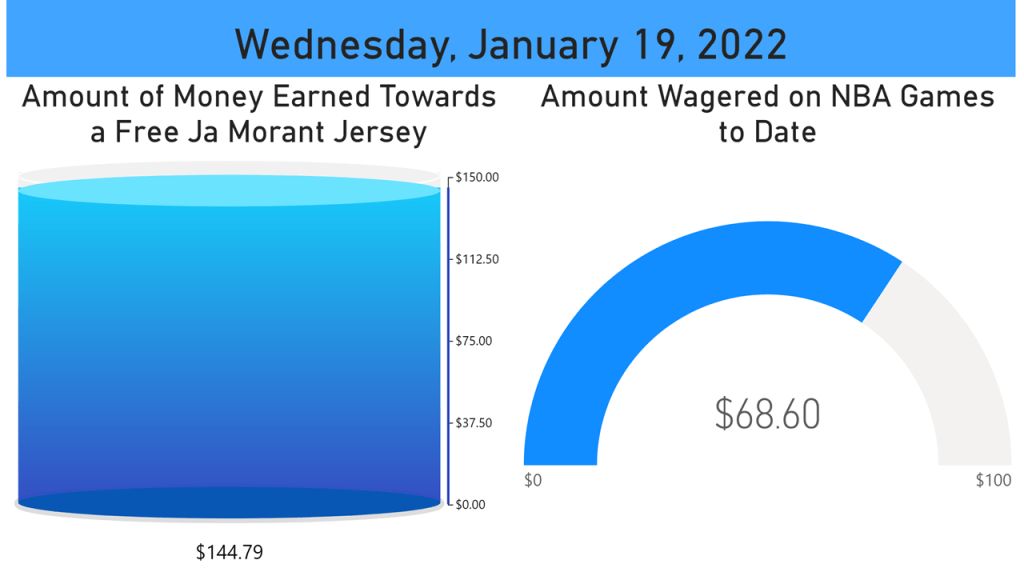 I was a subtle winner once again last night, walking away with a whopping $0.71! Honestly though, whatever it takes. The name of the game in this one is not to bleed money until I’ve spent $100 on NBA games. And while $0.71 in winnings is a silly amount of money to celebrate, I’m actually +$15.39 since January 11th, which marks the date where I noted that I needed to pay a little more attention to players missing due to COVID, betting on hot teams, and focus more on Underdogs. Turns out that’s a winning recipe so far. That being said, it helps that I’ve hit a few props along the way.