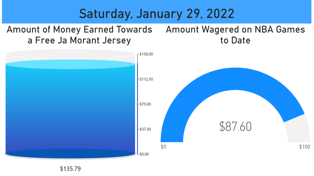 Since we’re coming down to the wire here, I went back and checked the rules of the promo. I have until midnight of the 31st, so I will place a few bets today and a few more on Monday. Thankfully I double-checked the stipulations and identified that one of my bets doesn’t count towards the promo. So sadly, my super-boost bet from 1/11 that won had to be removed from my winnings and my betting total. I’m down $14.21 with $12.40 left to bet. This is a tough blow for sure, but we’ll do our best to make up for it today and tomorrow!