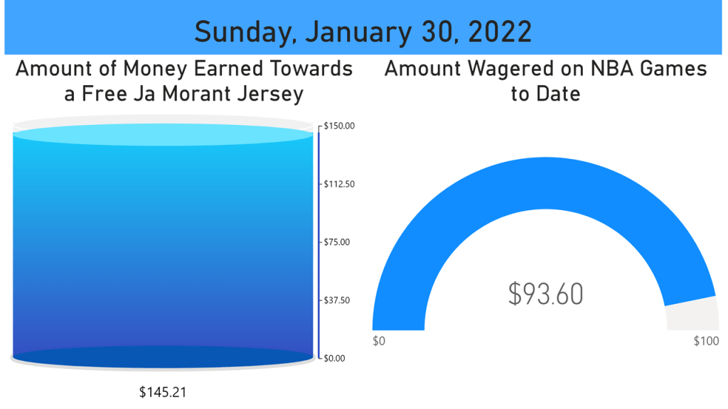 As for tonight, it’s the last night of this shindig. I’m $6.40 away from meeting the $100 total bet mark and only $4.79 down after last night’s upswing. I feel good about my odds tonight, so hopefully, I can send this promo out on a good night with winnings to push me over the top to my free jersey.