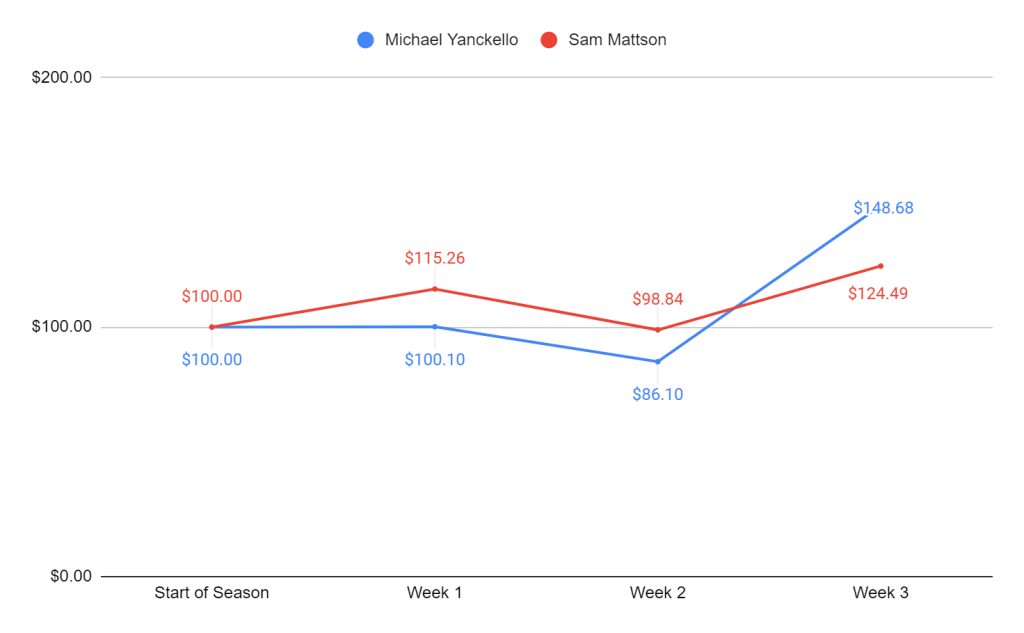 Yank’s Pick: $10.00 on a Panthers/Cardinals ML Parlay (+389) and $10.50 on MHJ O70.5 receiving yards (-105)