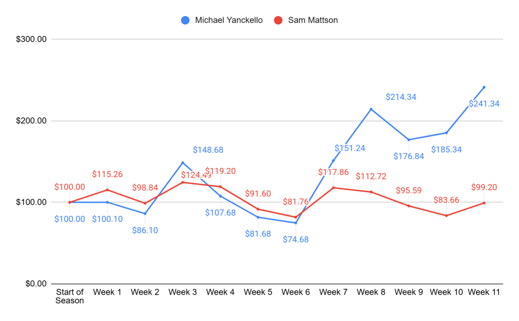 Yank’s Pick: $11.00 on the Chiefs-10.5(-110) and $10.50 on a Vikings-Bears Under 45.5 and Chiefs-Panthers Under 49.5 6-point teaser (-105)