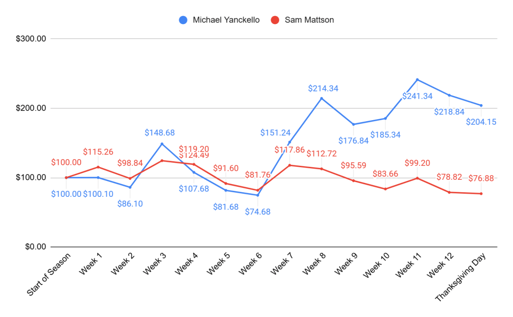Sam: Yank lays out the case for this pick, but I will say, it does worry me that we are fully in the “all of the teams have figured out the Kingsbury Offense” portion of the season. His teams always collapse halfway through the season and we’ve started to see signs of that in D.C. I’m going to give them a nervous shot due to their opponent, but it’s something to look out for going forward.